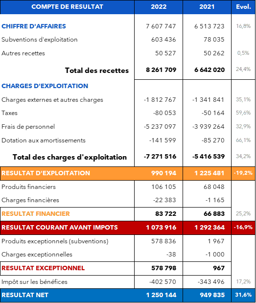 Cette année, le résultat d’exploitation de l’entreprise a ainsi atteint 990 k€ (1,23M€ en 2021).